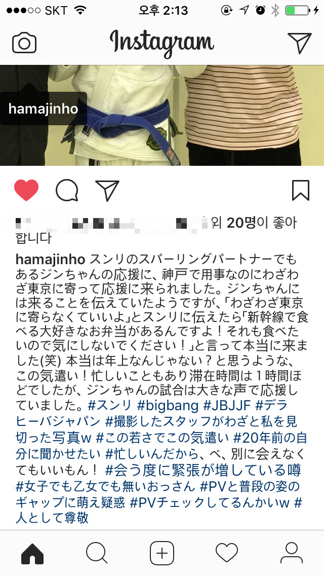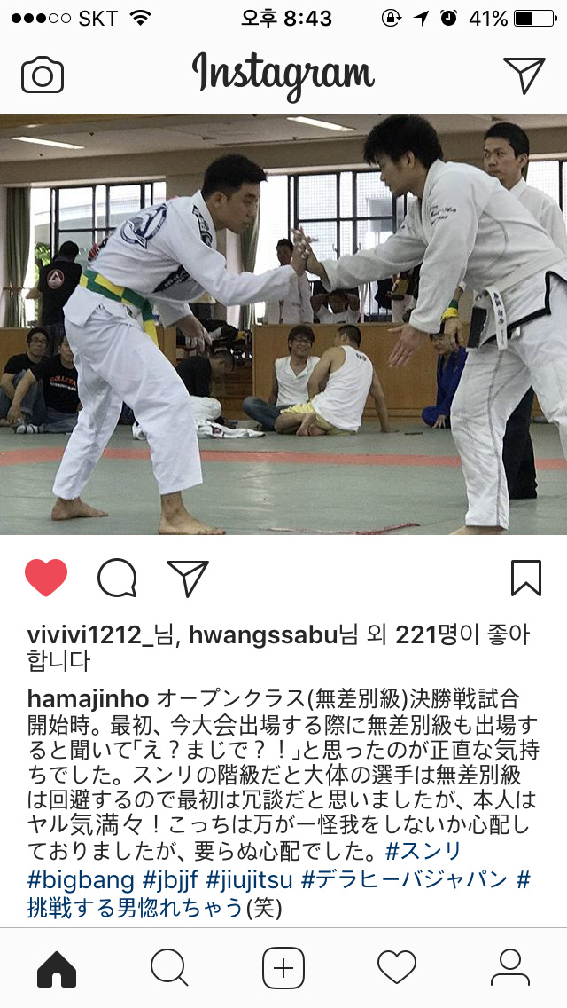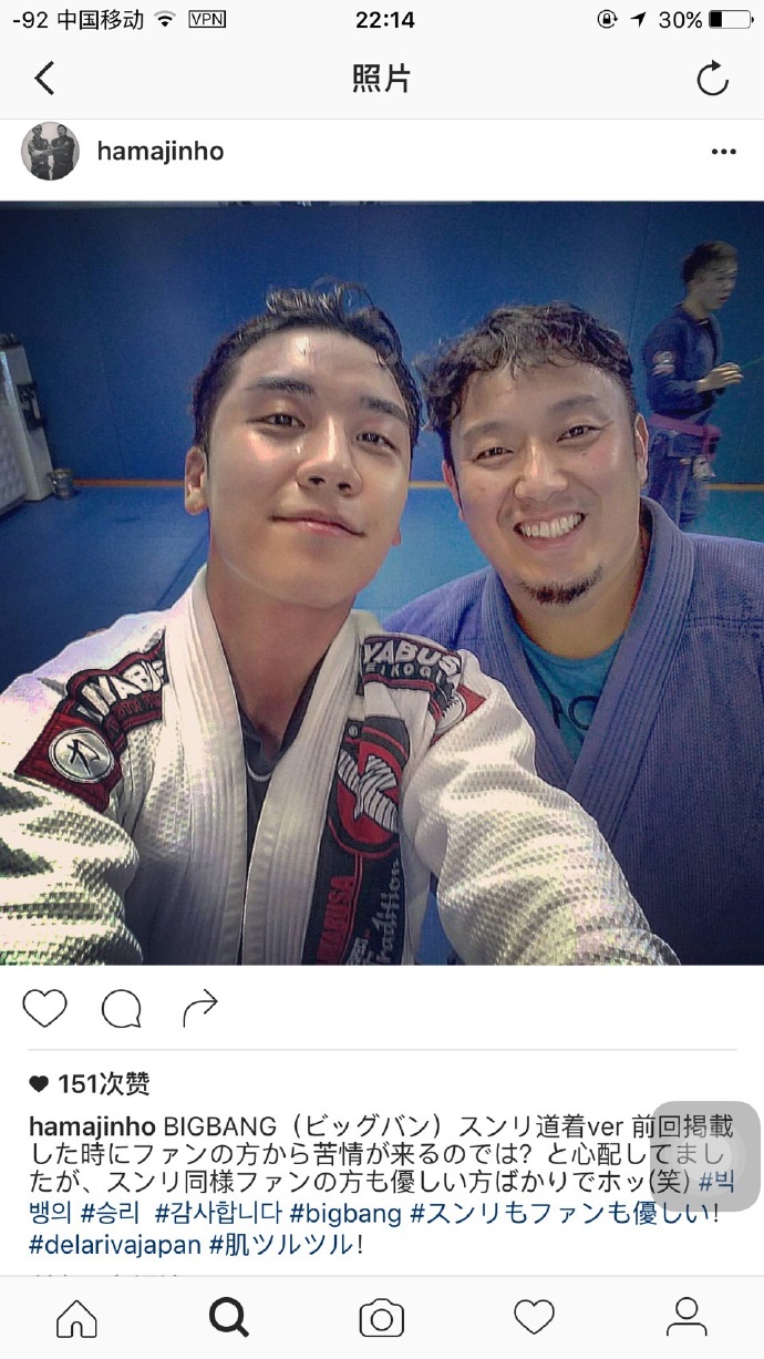 自从胜利来韩国后就一直和他联系,但他好像很忙,我当然也知道,就跟他说:“没事的!别勉强自己!” 我还以为这次能见到他呢?我一点也不难过!结果他从仁川机场一路赶来,给了我一个惊喜!#Sunri #胜利 #bigbang #DeLaRivaJapan #bonjiujitsu #柔道 #对练了一个多小时!#虽然很可怜他这么忙,但是当他抱住我喊“滨岛老师!”的时候,我差点哭了哈哈