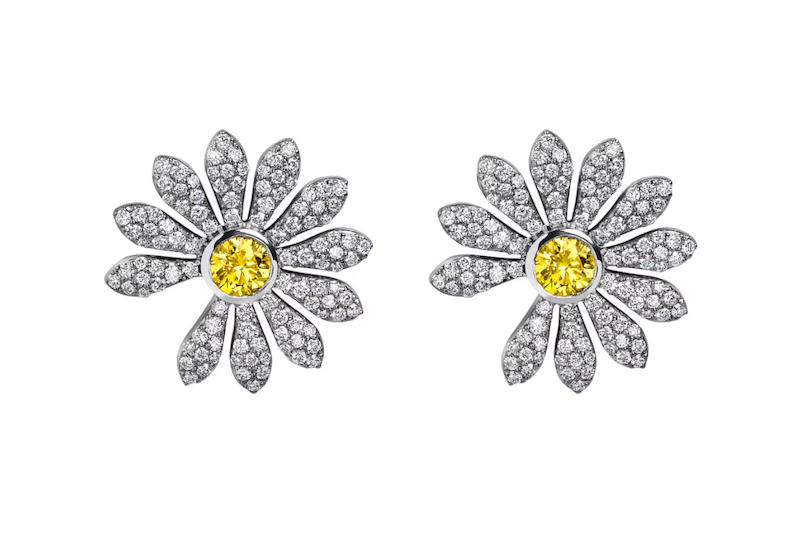 18k白金手工制作,镶嵌有白钻、密镶珍贵沙弗莱石和一颗艳彩黄钻