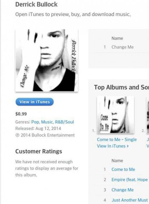2014年8月12日:Derrick Bullock将歌曲《Eyes, Nose, Lips》上传至iTunes