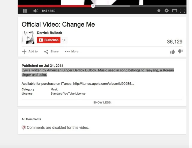 2014年7月31日:Derrick Bullock将歌曲《Eyes, Nose, Lips》上传至YouTube